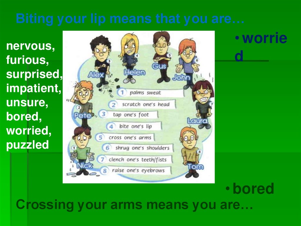 Become a body language reader!Fill in: nervous, furious, surprised, impatient,
