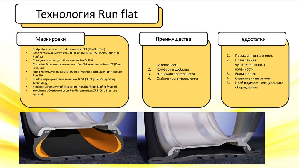Pirelli использует обозначение RFT (RunFlat Technology) или просто