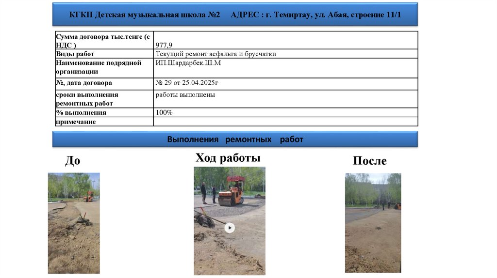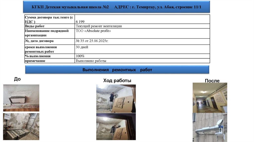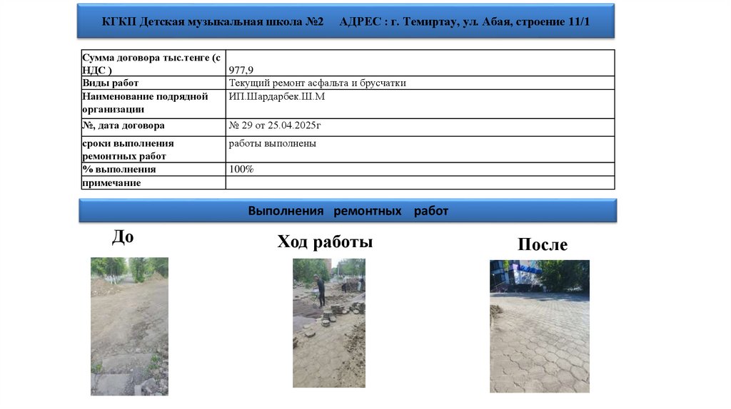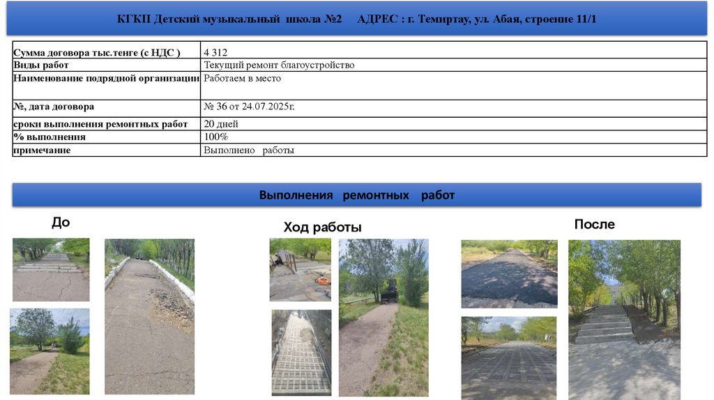 КГКП Детский музыкальный школа №2АДРЕС : г. Темиртау, ул. Абая, строение 11/1