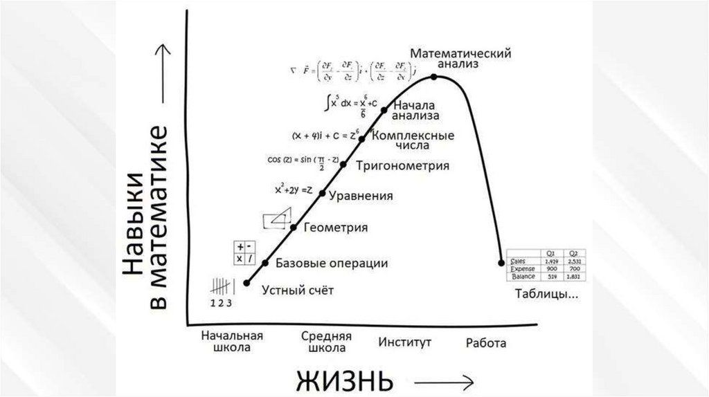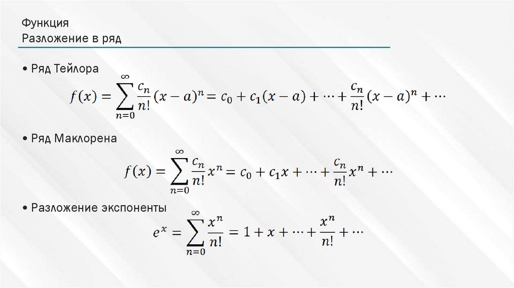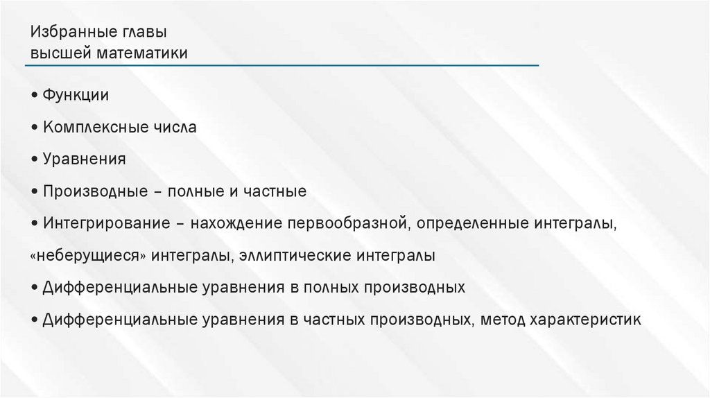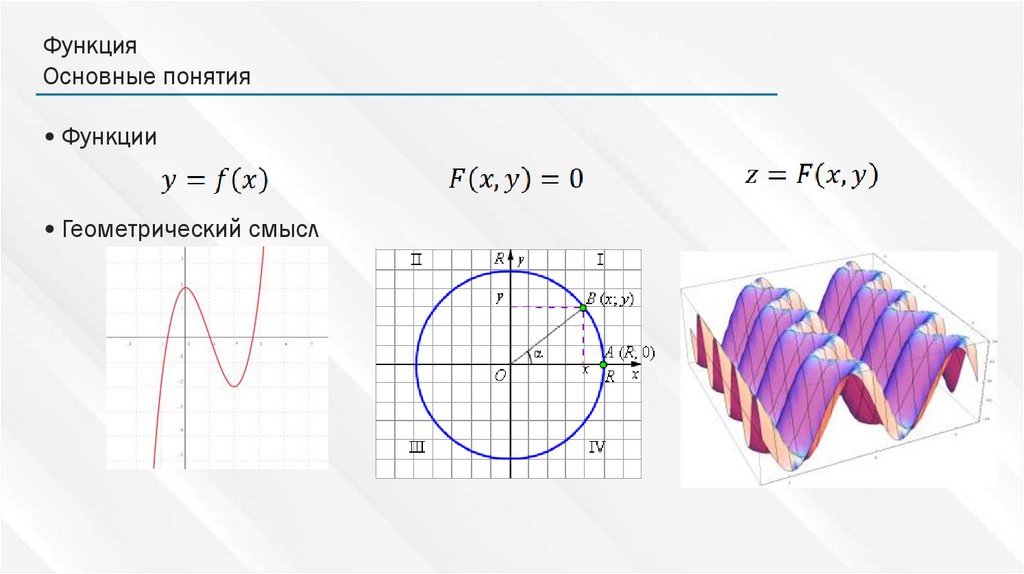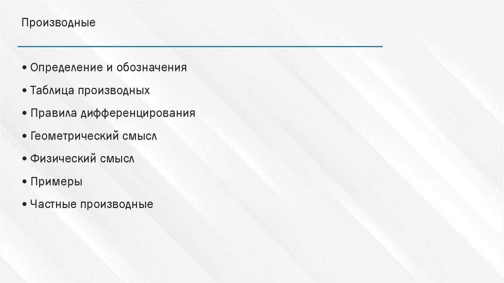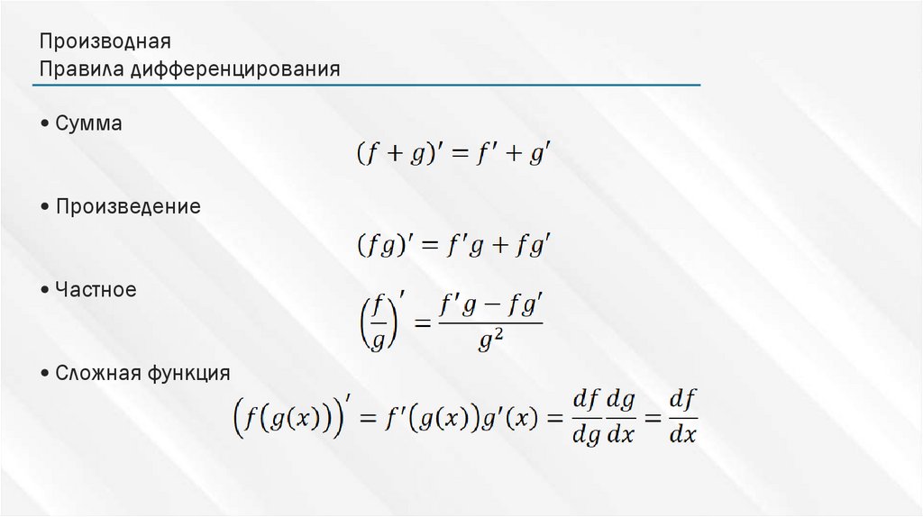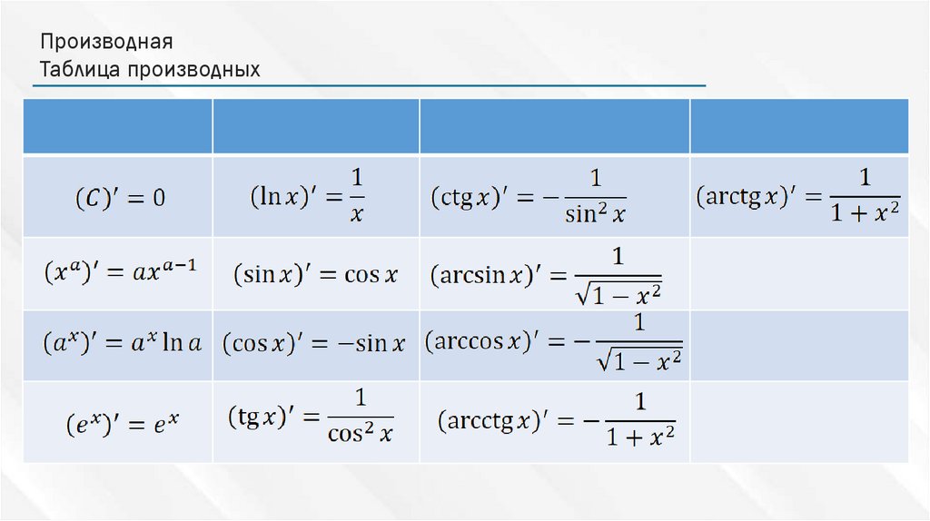 • Интегрирование – нахождение первообразной, определенные интегралы,