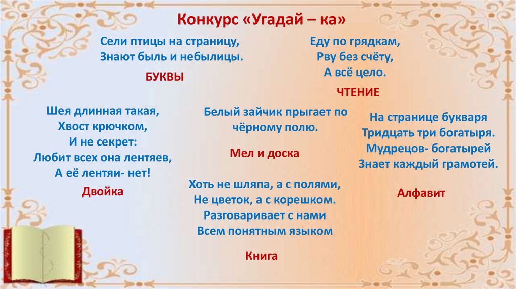 Конкурс «Угадай – ка»Сели птицы на страницу,