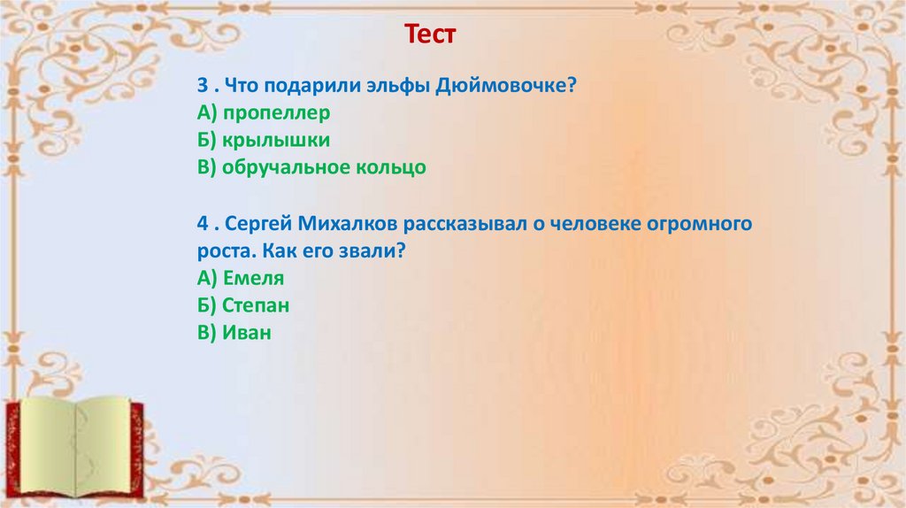 Тест3 . Что подарили эльфы Дюймовочке?