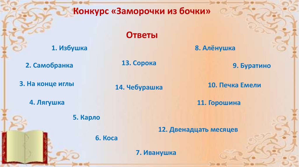 Конкурс «Заморочки из бочки»Ответы