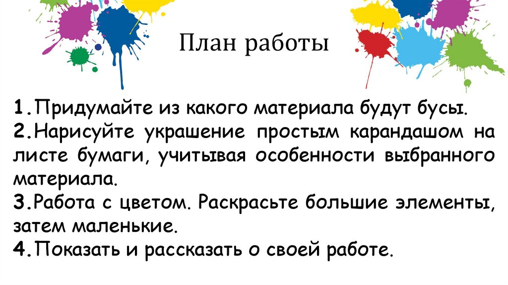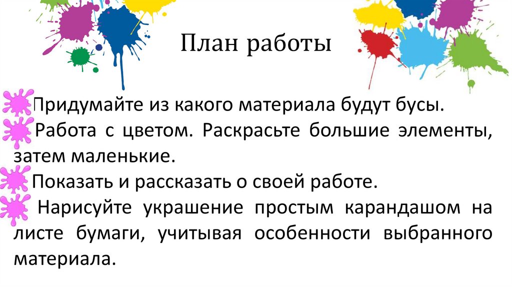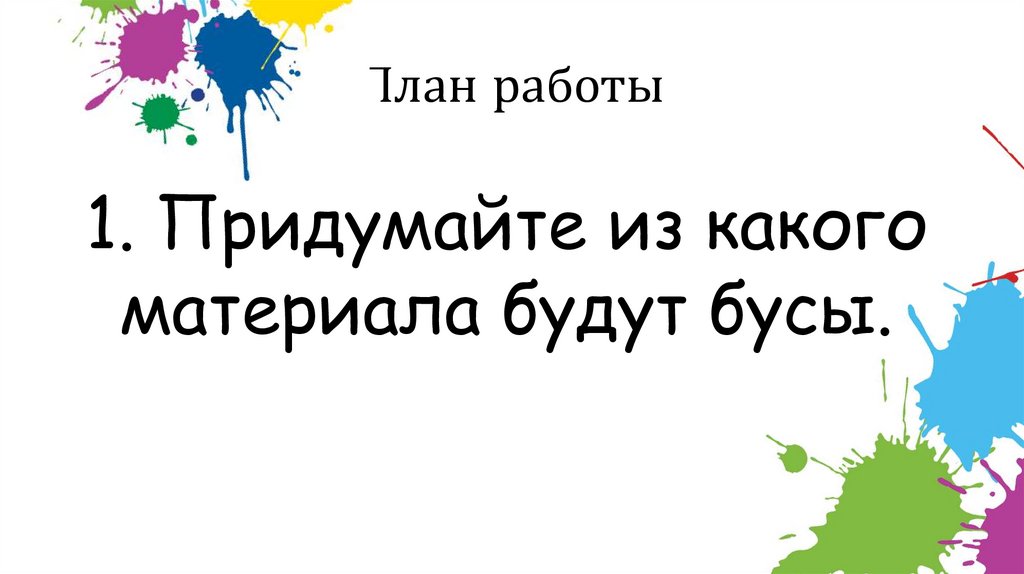 План работы() Придумайте из какого материала будут бусы.