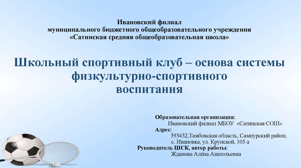 Школьный спортивный клуб – основа системыфизкультурно-спортивного
