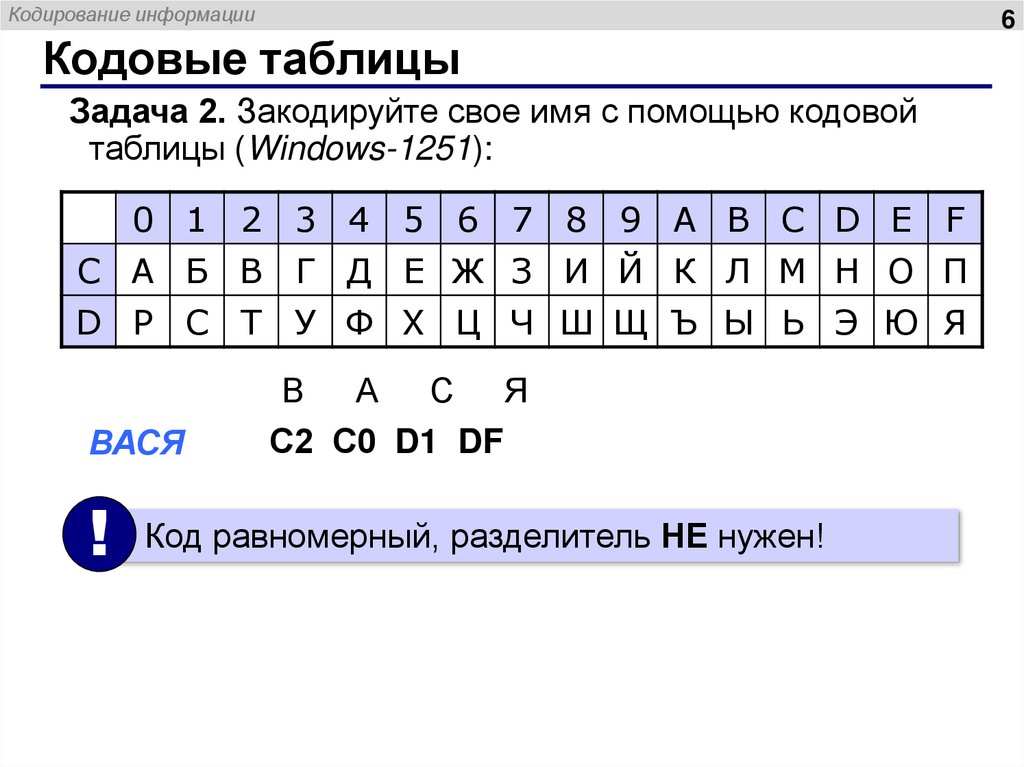 Задача 2. Закодируйте свое имя с помощью кодовой