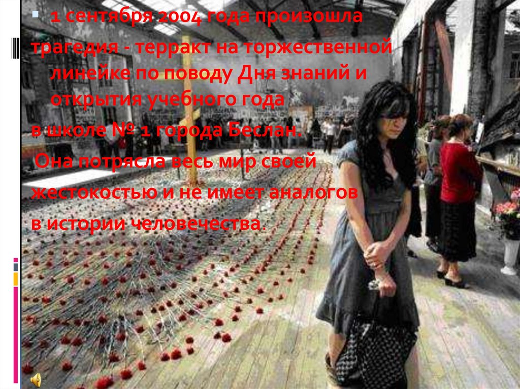1 сентября 2004 года произошлатрагедия - терракт на торжественной