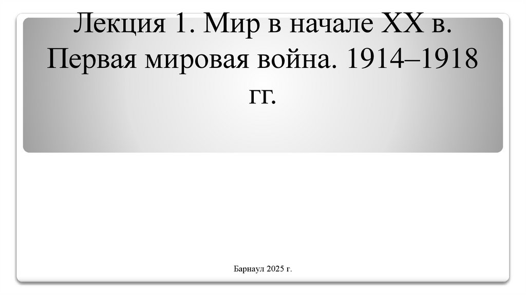Лекция 1. Мир в начале ХХ в.Первая мировая война. 1914–1918
