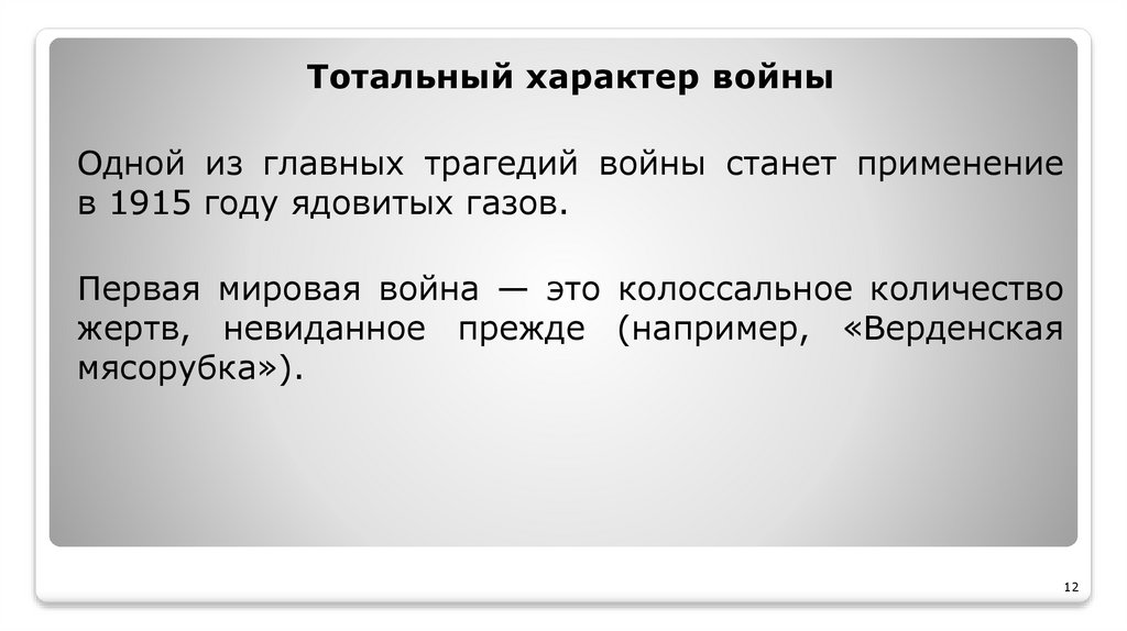 Тотальный характер войныОдной из главных трагедий войны станет применение