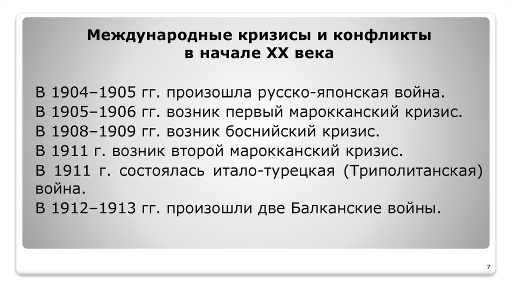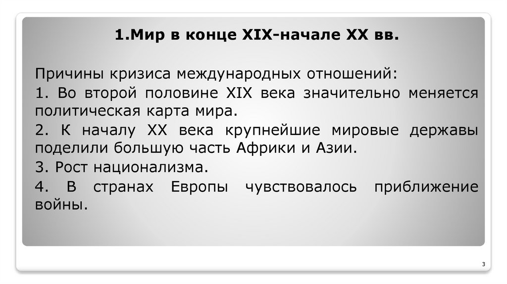 1.Мир в конце XIX-начале XX вв.Причины кризиса международных отношений: