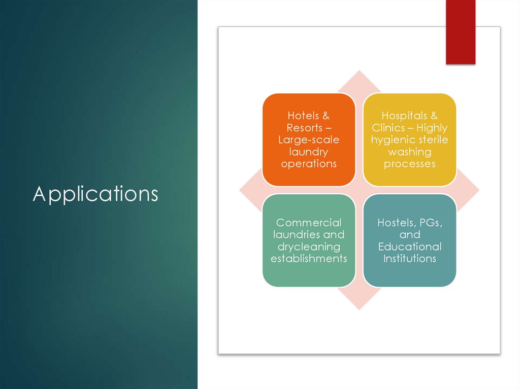 Used in hotels, hospitals, laundries, hostels, and
