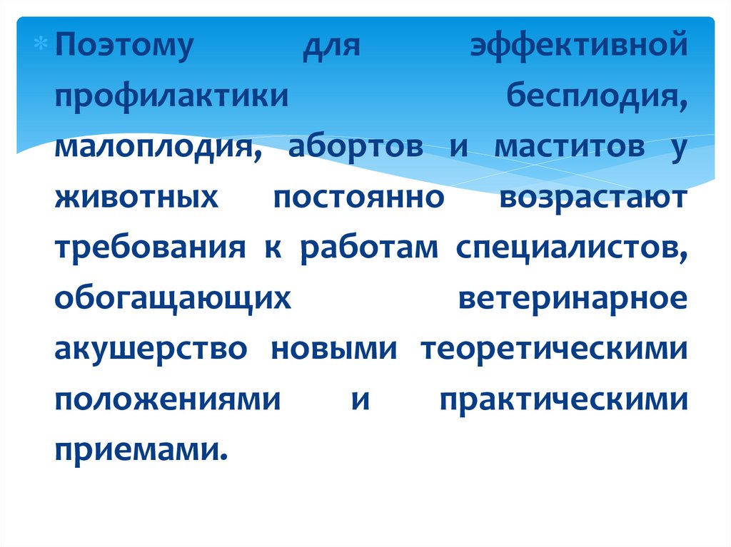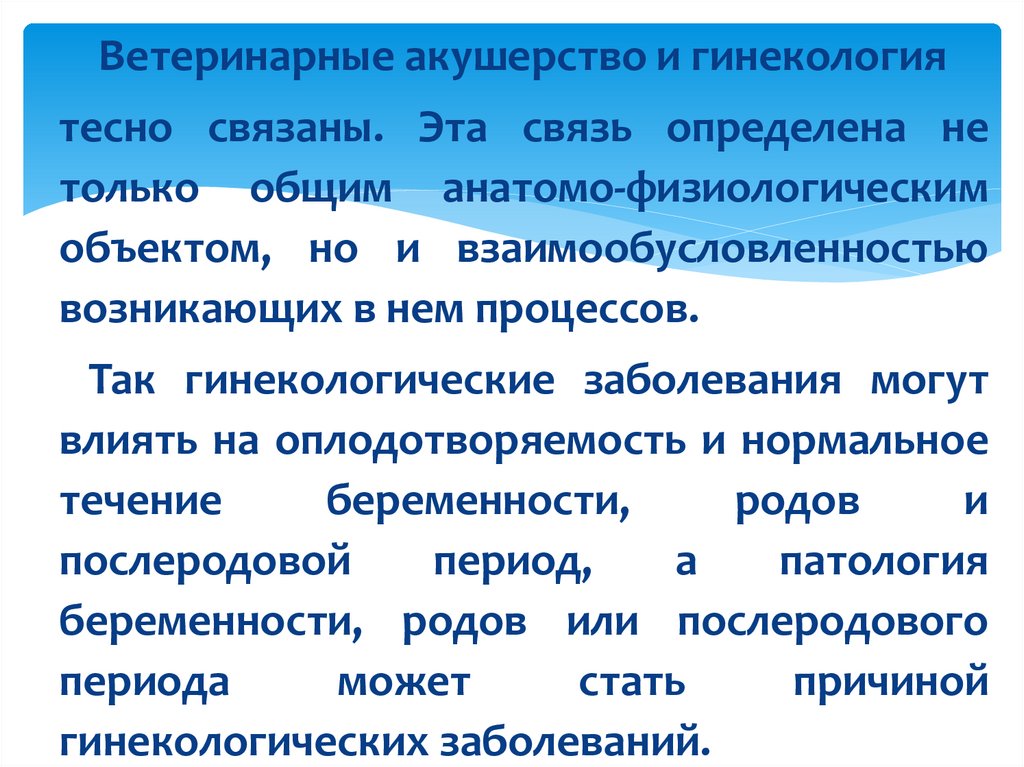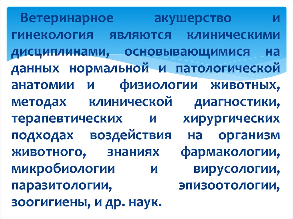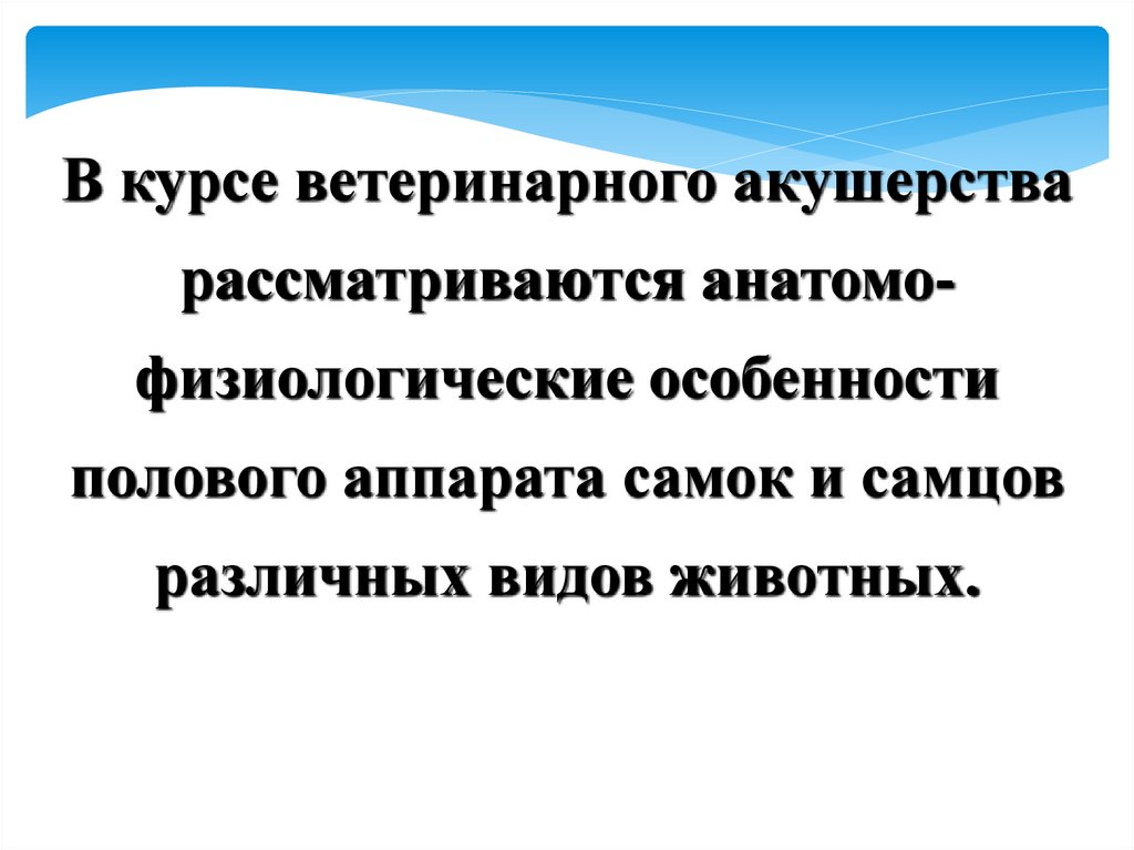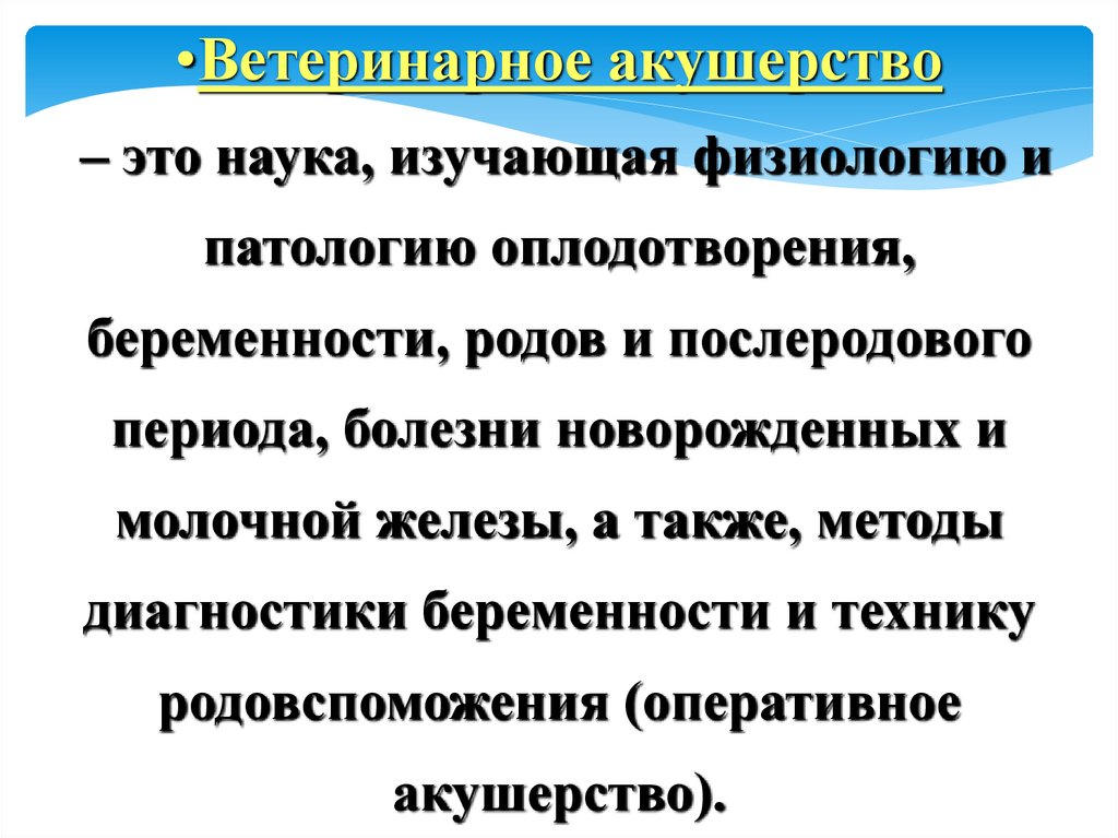 •Ветеринарное акушерство– это наука, изучающая физиологию и
