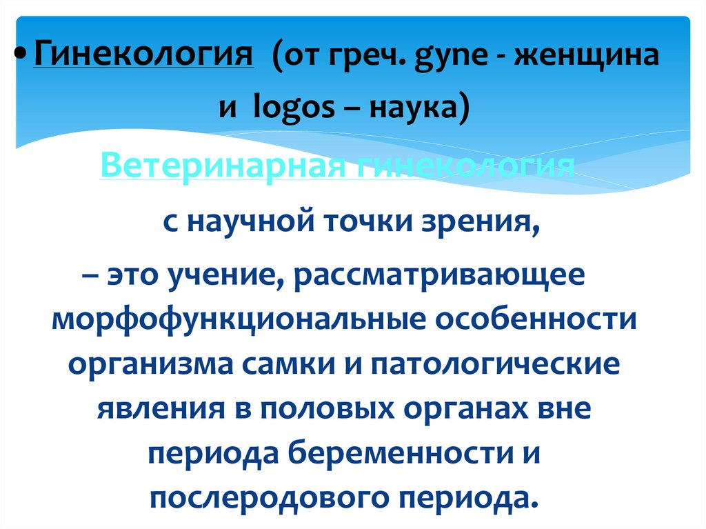 •Гинекология (от греч. gyne - женщинаи logos – наука)
