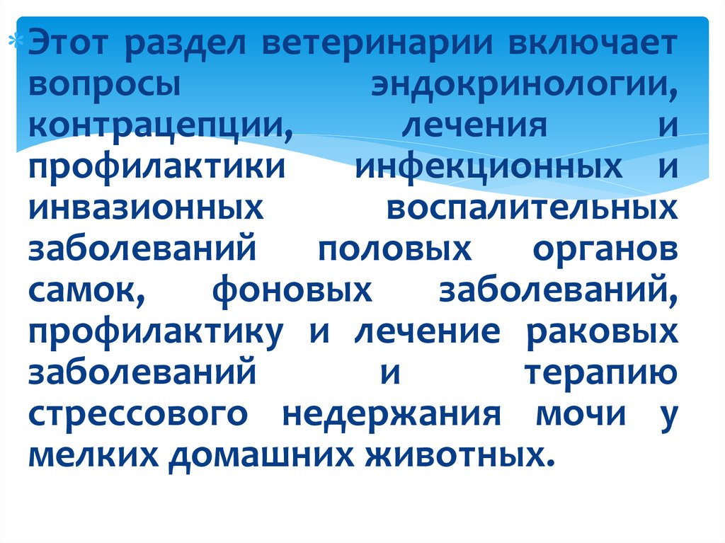 Этот раздел ветеринарии включаетвопросы