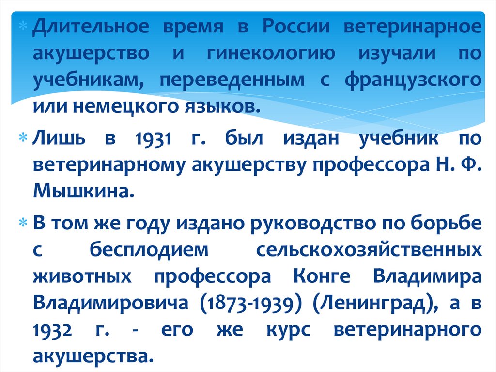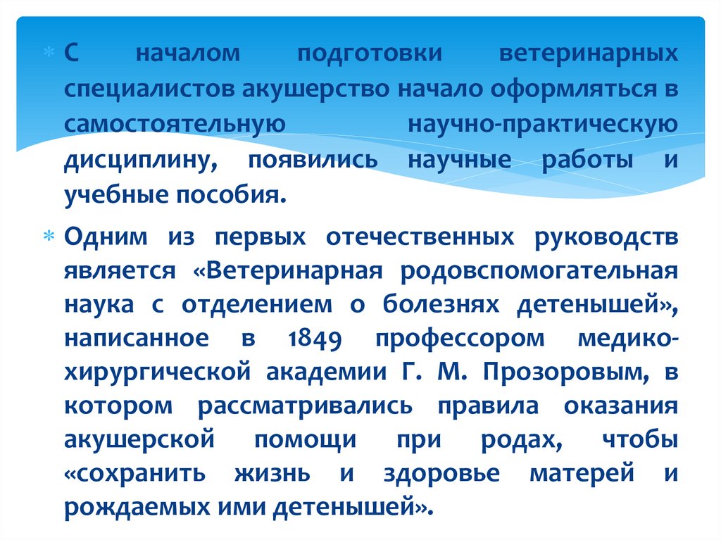 области ветеринарного акушерства и