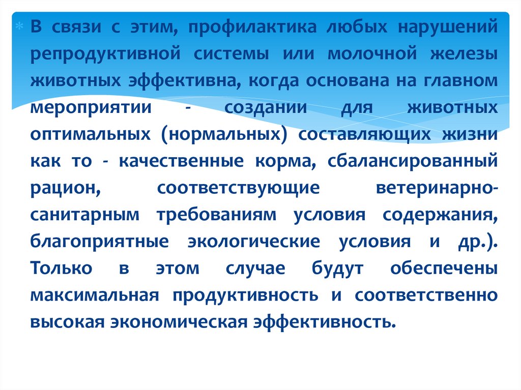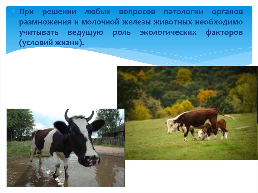 При решении любых вопросов патологии органовразмножения и молочной железы животных необходимо