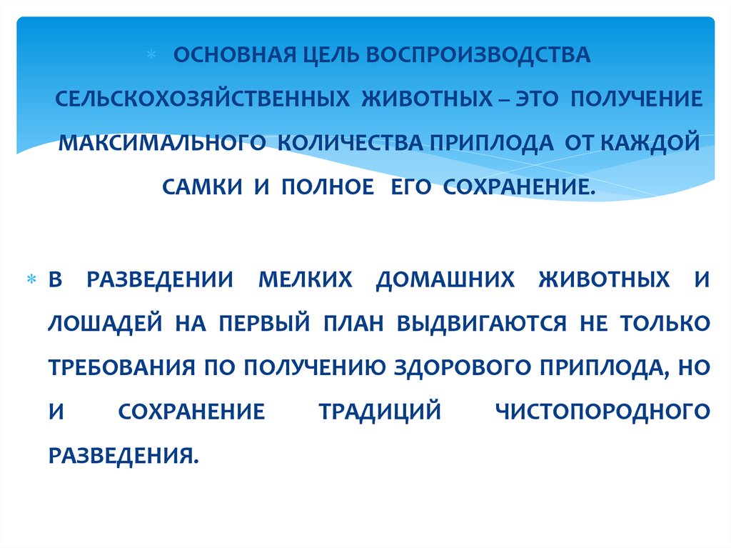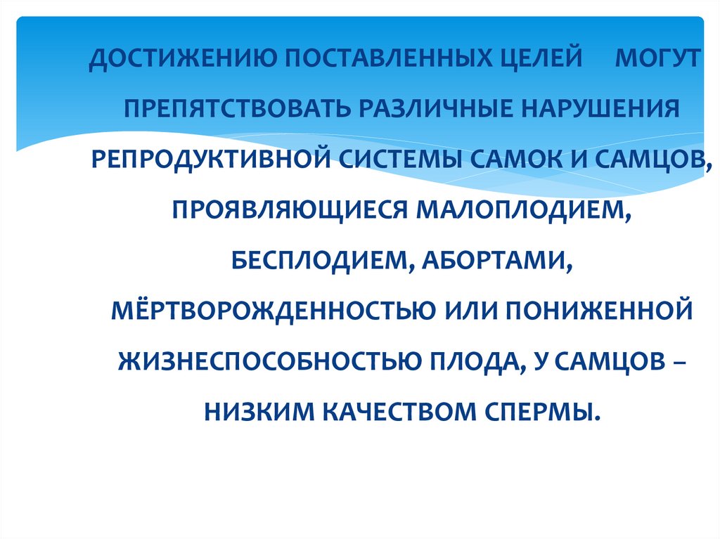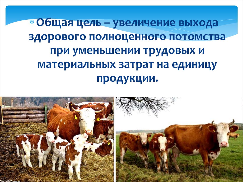 Общая цель – увеличение выходаздорового полноценного потомства