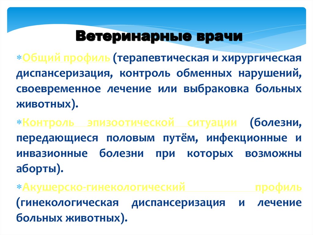 Ветеринарные врачиОбщий профиль (терапевтическая и хирургическая