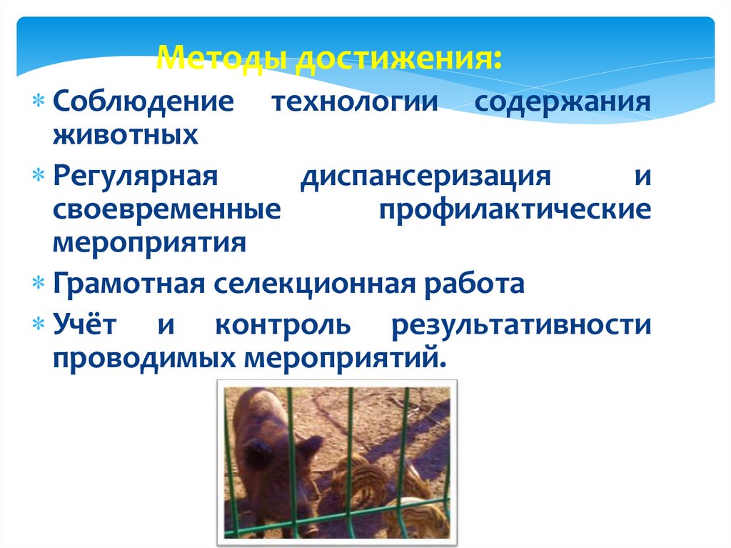 Методы достижения:Соблюдение технологии содержания