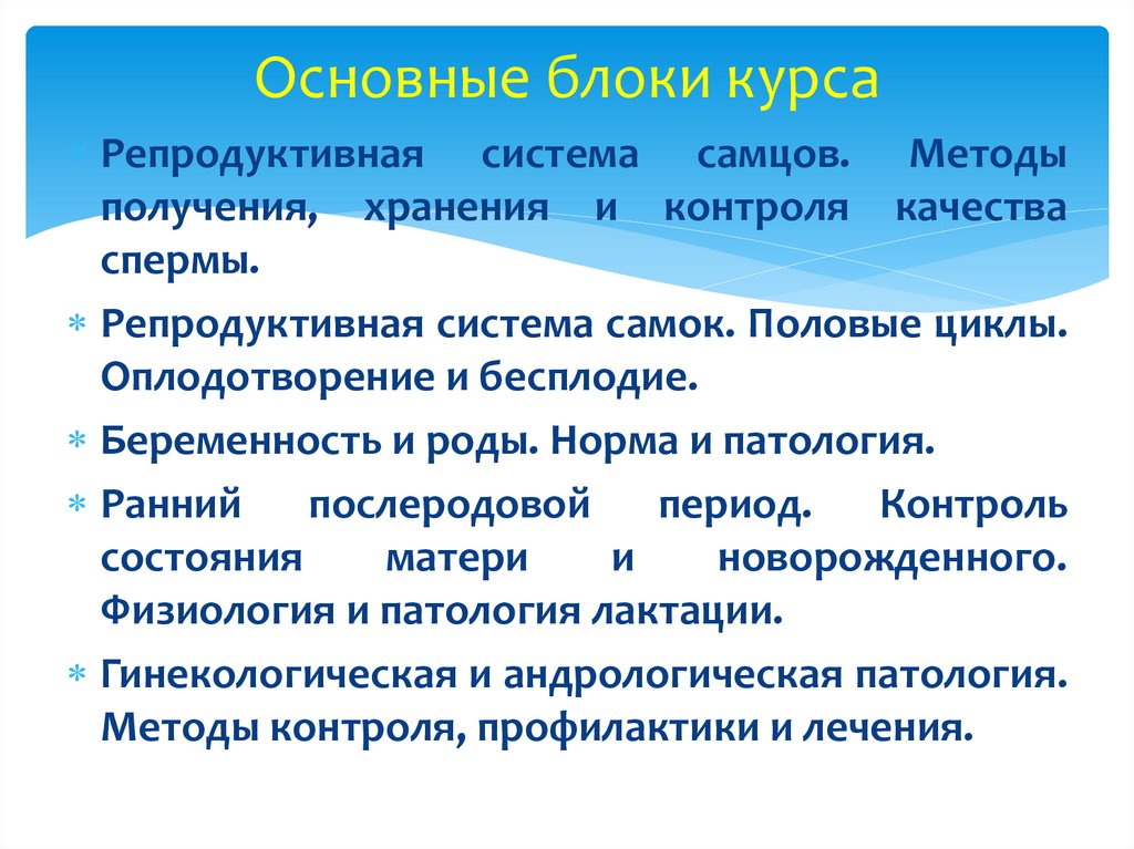 В курсе ветеринарного акушерстварассматриваются анатомо-