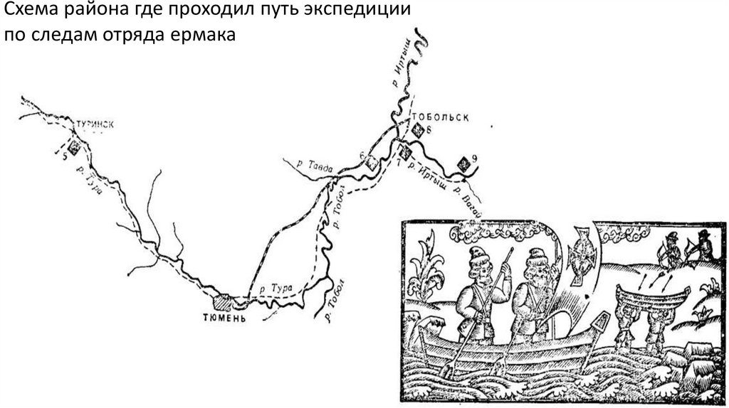 Схема района где проходил путь экспедициипо следам отряда ермака