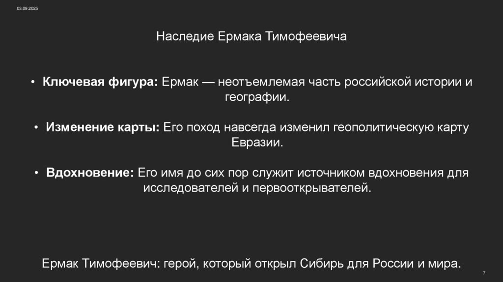 03.09.2025Поход Ермака: начало завоевания Сибири