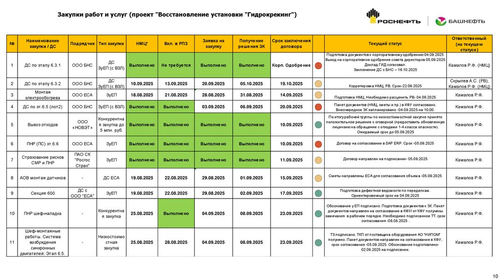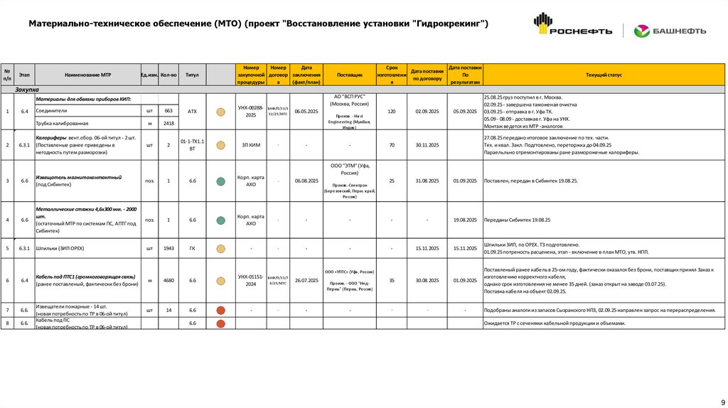 Мониторинг проекта. Восстановление установки «Гидрокрекинг» филиала «Башнефть-Уфанефтехим»
