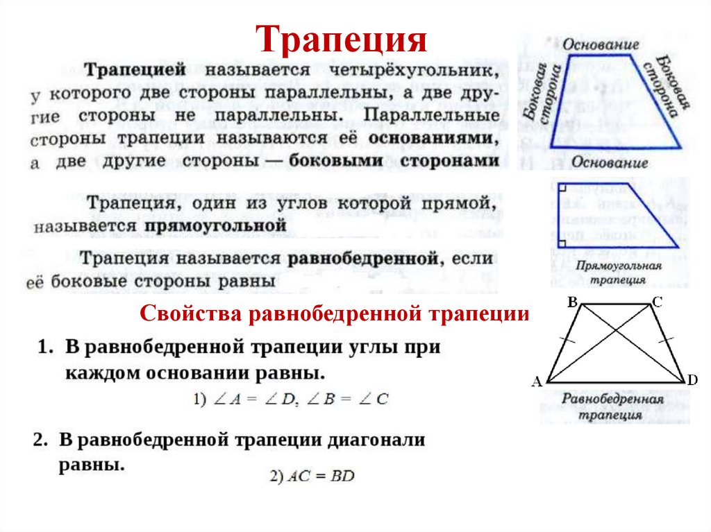 4. Дайте определение трапеции. Назовите виды трапеций.