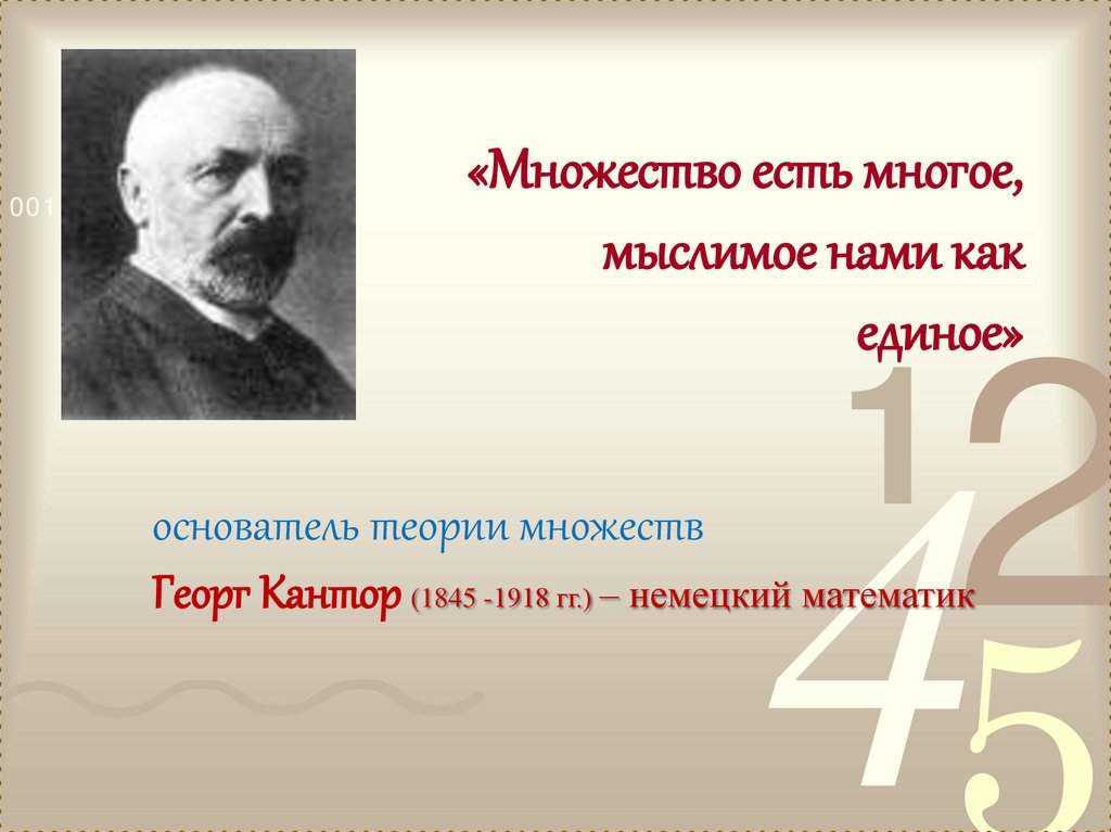 немецким ученым Георгом Кантором (18451918).Следуя Кантору, понятие "множество"