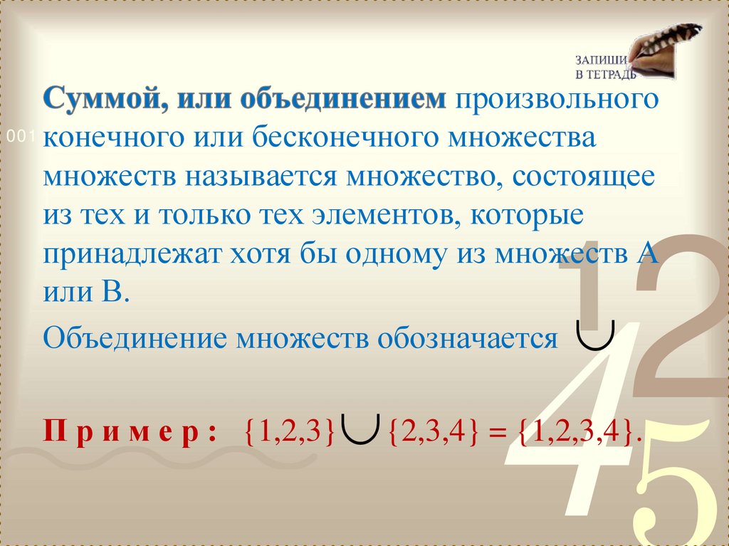12. ОБЪЕДИНЕНИЕ МНОЖЕСТВ