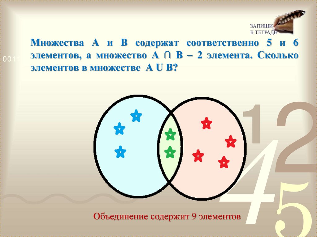 0100 1011 А ∩ В – 2 элемента. Сколько