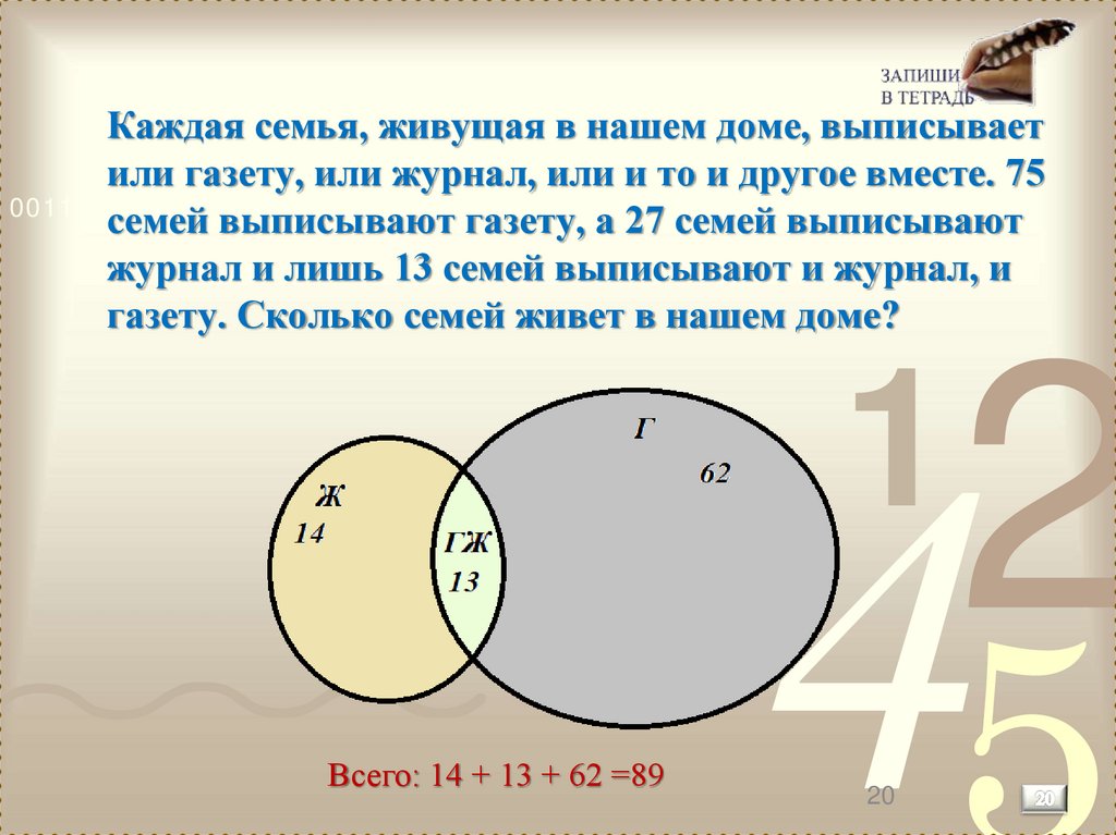 Каждая семья, живущая в нашем доме, выписываетили газету, или журнал, или и то и другое вместе. 75
