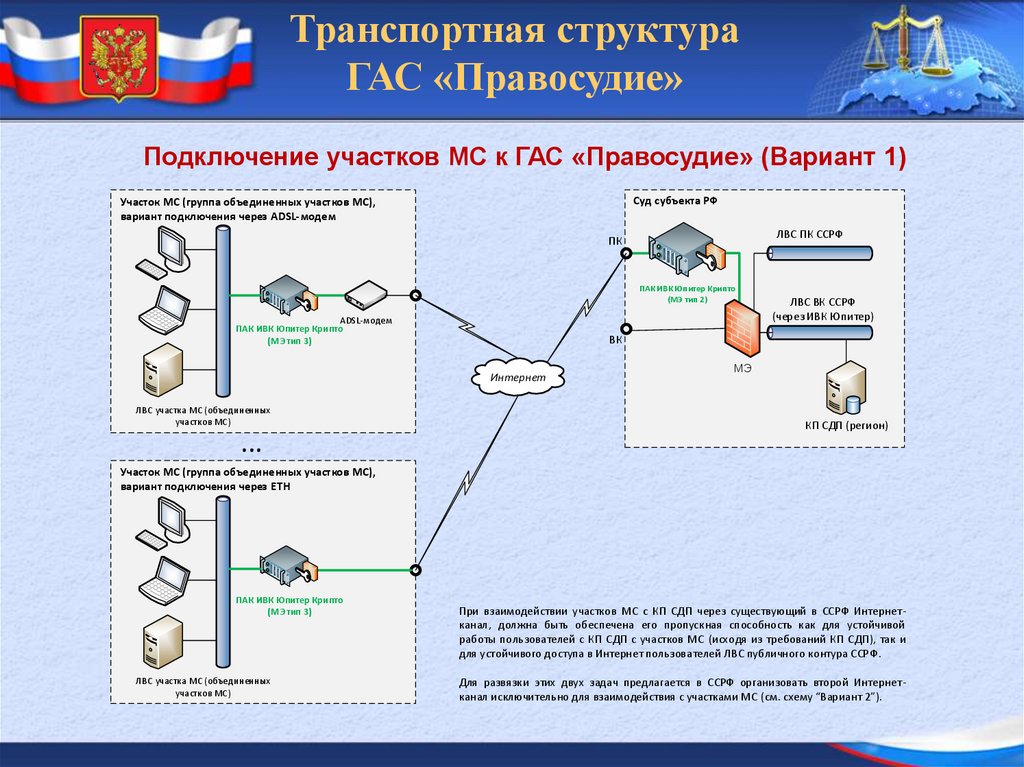 Подключение участков МС к ГАС «Правосудие» (Вариант 1)