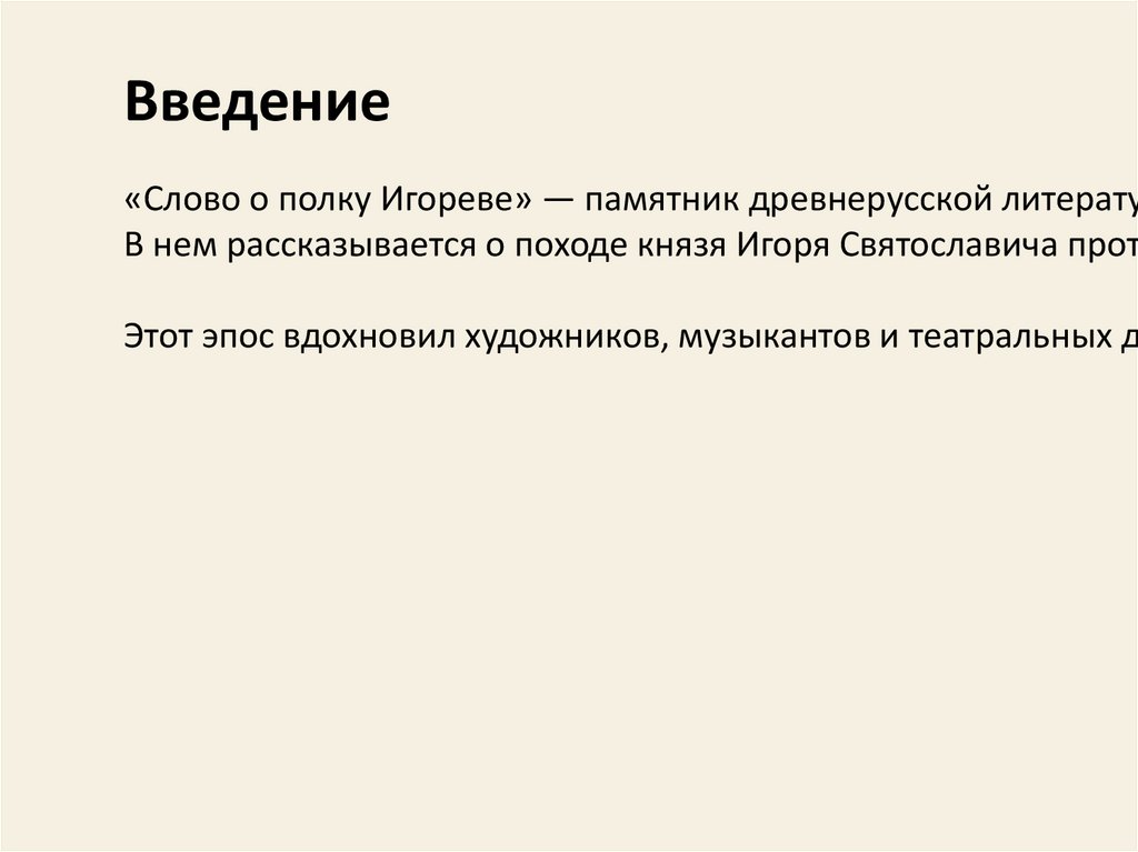 Введение«Слово о полку Игореве» — памятник древнерусской литерату
