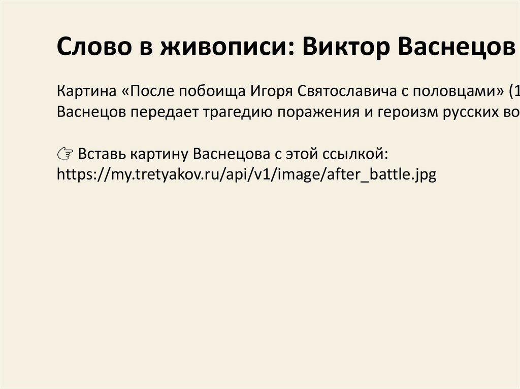 Слово в живописи: Виктор ВаснецовКартина «После побоища Игоря Святославича с половцами» (1