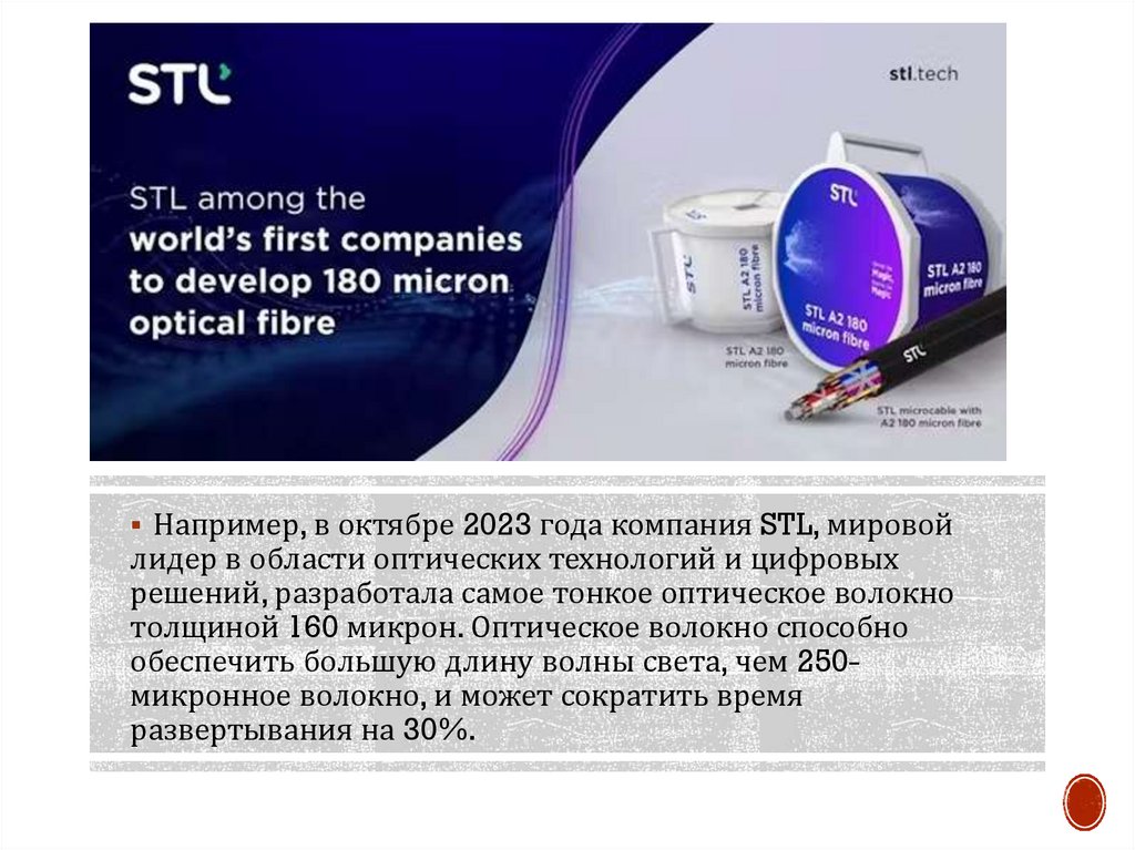 Например, в октябре 2023 года компания STL, мировойлидер в области оптических технологий и цифровых