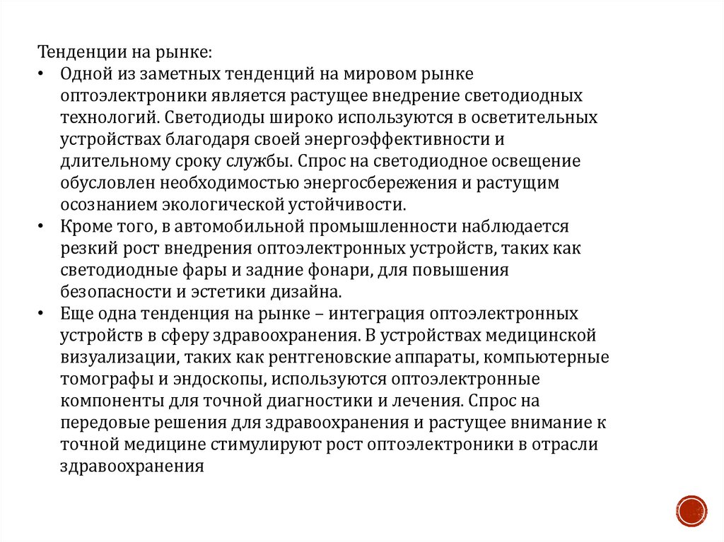 • Еще одна тенденция на рынке – интеграция оптоэлектронных