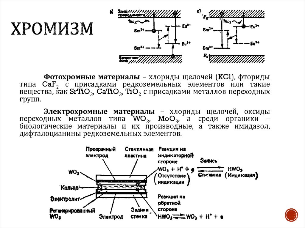 Фотохромные материалы – хлориды щелочей (KCl), фторидытипа CaF2 с присадками редкоземельных элементов или такие