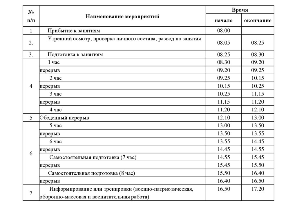 Утренний осмотр, проверка личного состава, развод на занятия