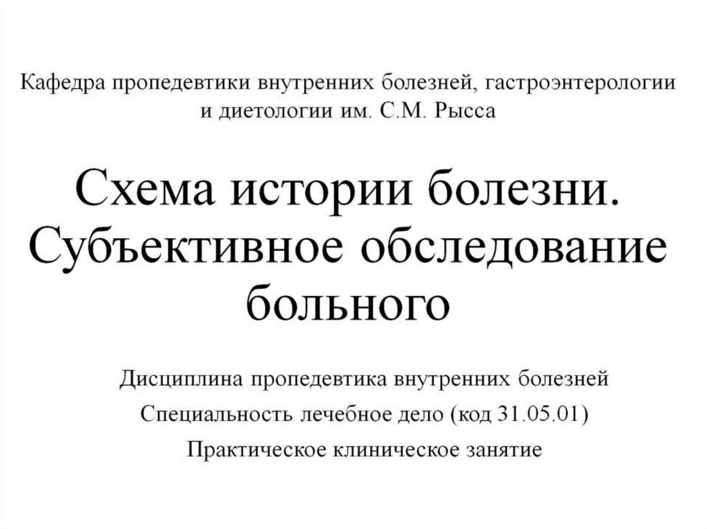 Введение. Предмет и задачи пропедевтики. Схема истории болезни. Расспрос больных