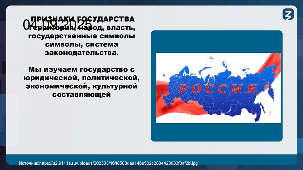 ПРИЗНАКИ ГОСУДАРСТВАТерритория, народ, власть,