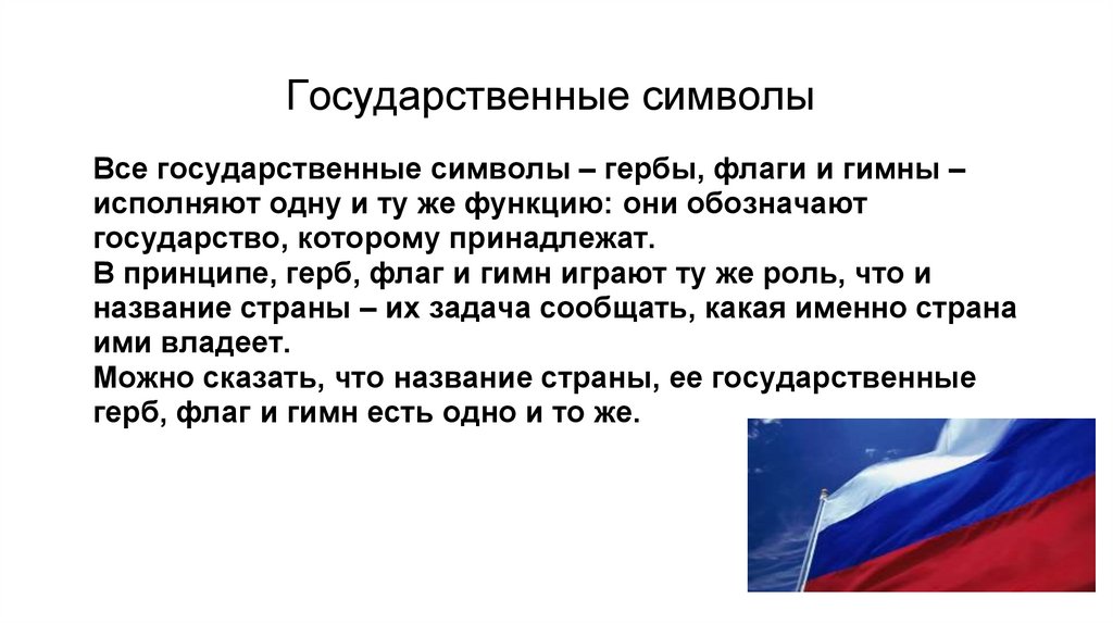 В принципе, герб, флаг и гимн играют ту же роль, что и