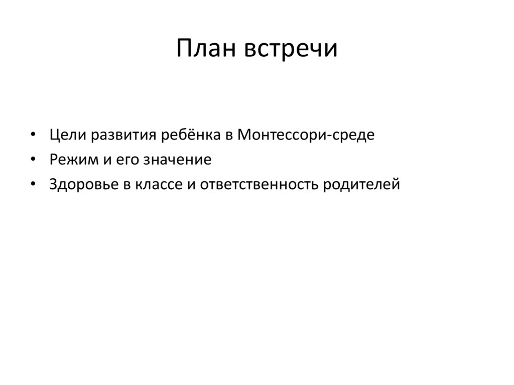 План встречи• Цели развития ребёнка в Монтессори-среде
