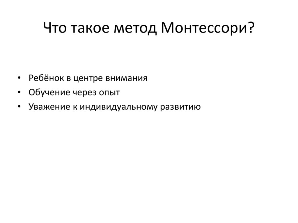 Что такое метод Монтессори?• Ребёнок в центре внимания