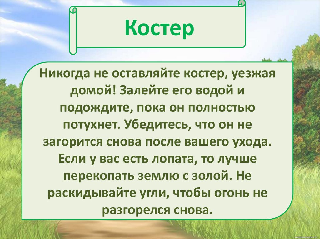КостерНикогда не оставляйте костер, уезжая