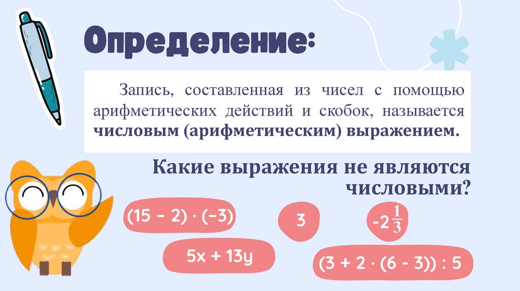 Запись, составленная из чисел с помощьюарифметических действий и скобок, называется