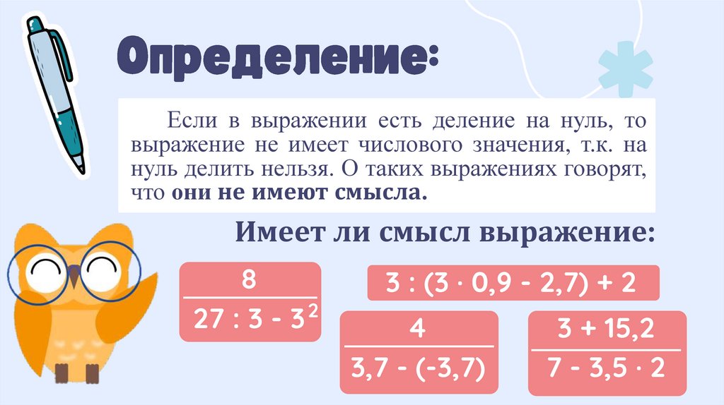 Если в выражении есть деление на нуль, товыражение не имеет числового значения, т.к. на