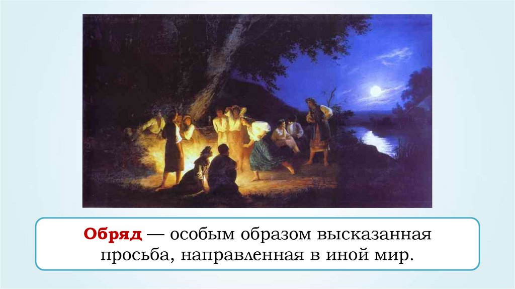 Обряд — особым образом высказаннаяпросьба, направленная в иной мир.