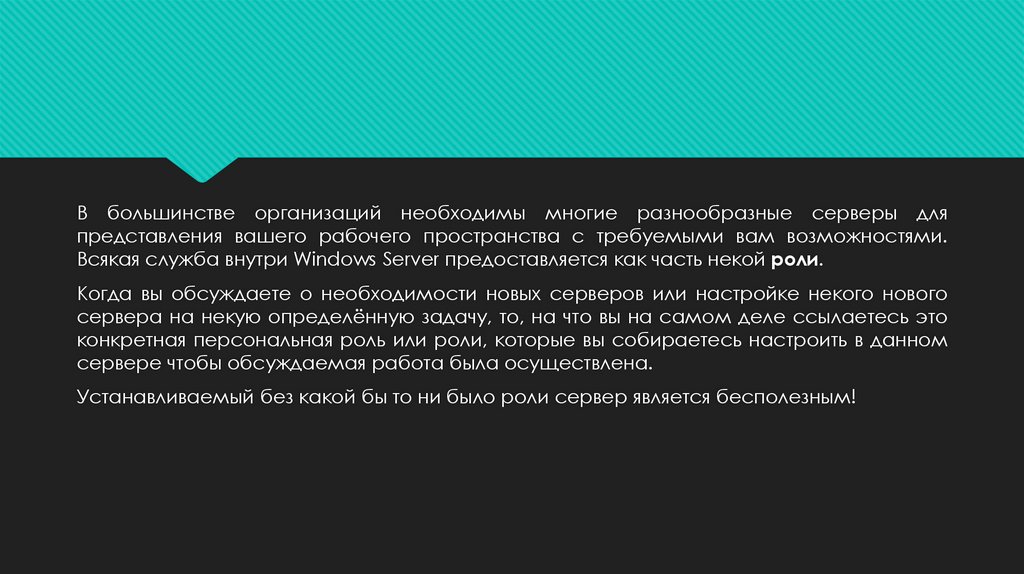 Всякая служба внутри Windows Server предоставляется как часть некой роли.