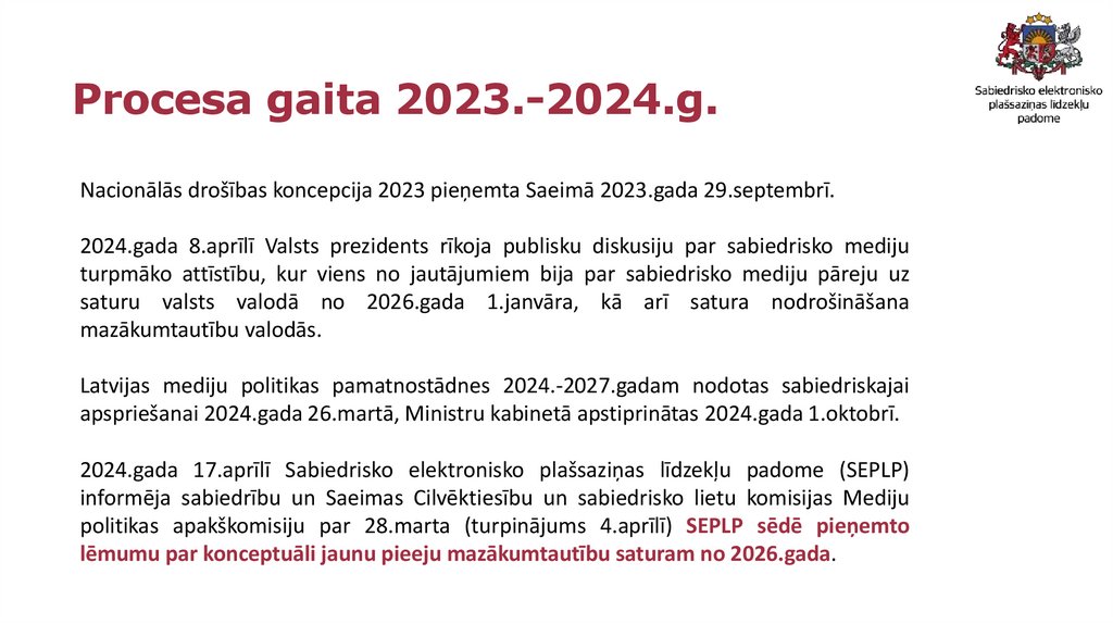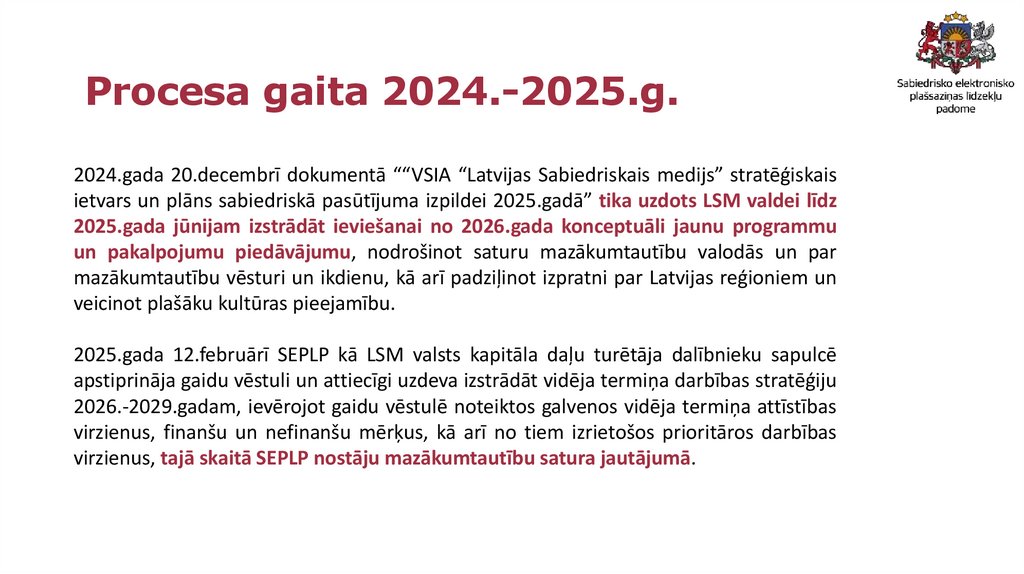 Procesa gaita 2024.-2025.g.2024.gada 20.decembrī dokumentā ““VSIA “Latvijas Sabiedriskais medijs” stratēģiskais